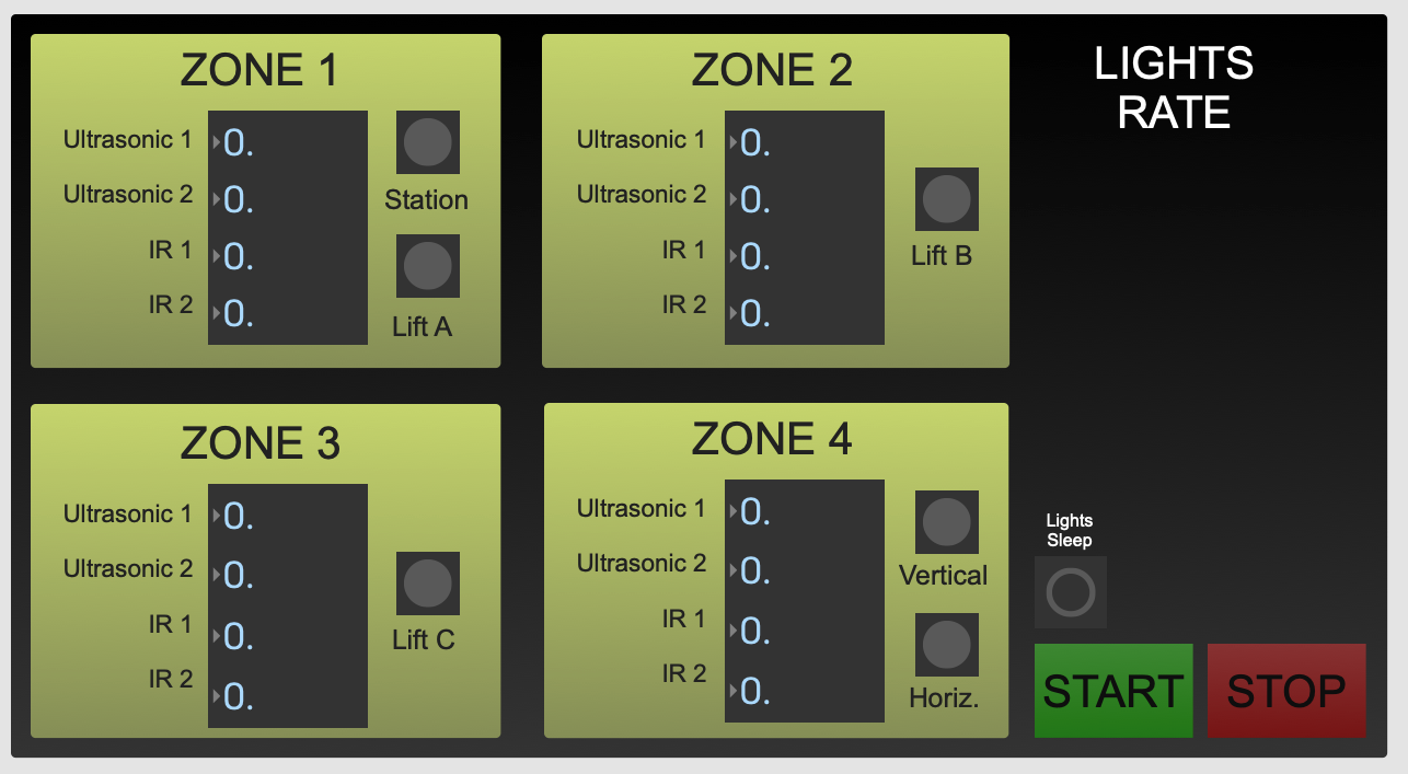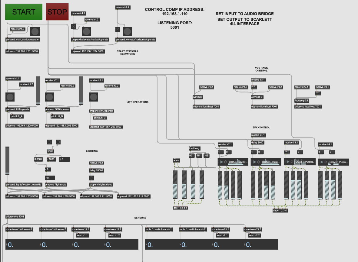 Used to monitor over ten wireless microcontrollers and their input measurements. Also used to trigger sounds, servos, and lights based on location of "train."