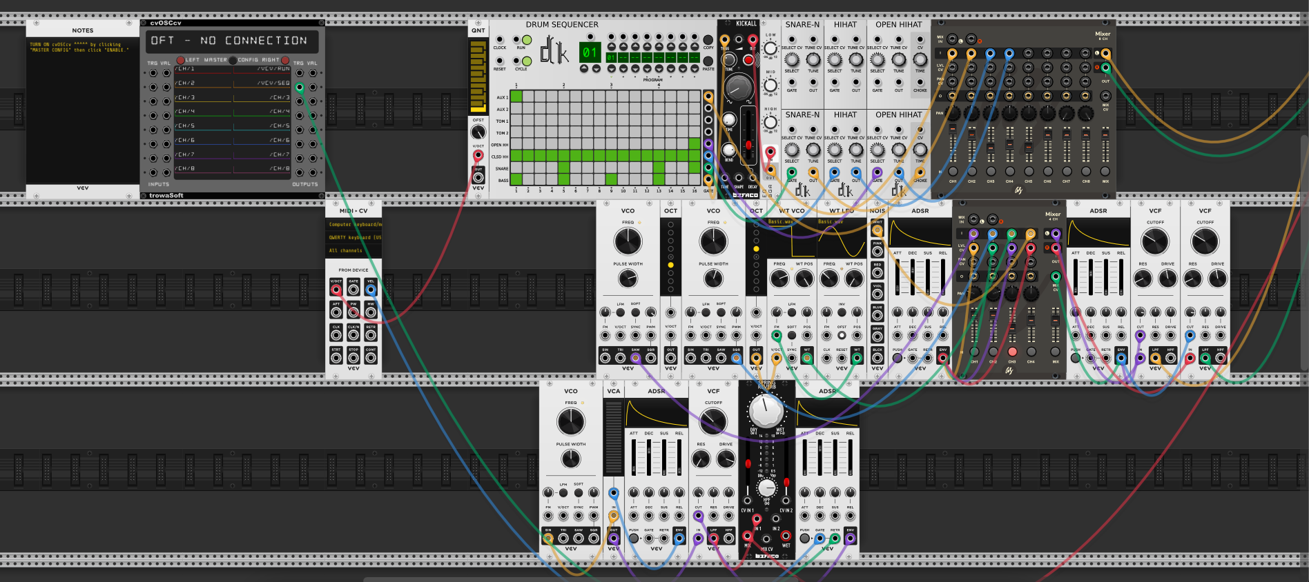 Connected to VCV Rack Virtual Modular Synth Software to Control Playback and Rate of Music